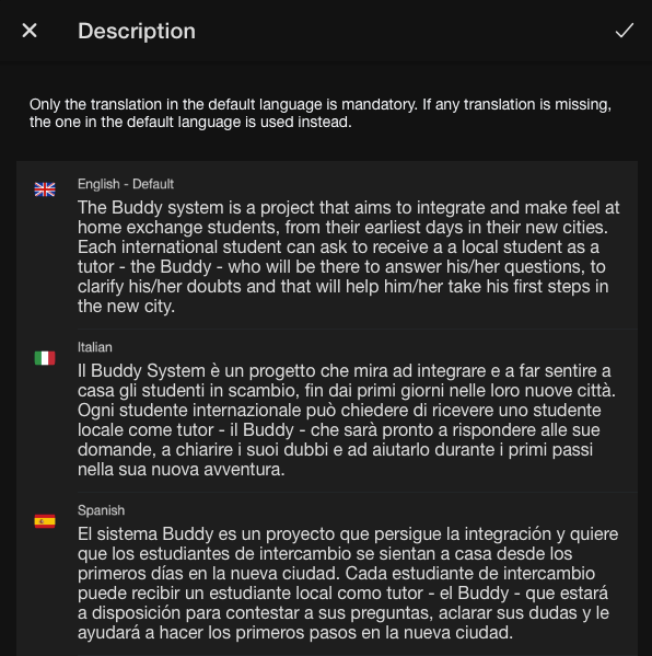 When we create a new project – from scratch or using one of the templates from the Gallery, we can now edit all the related information. Since we are in such an international environment, Papaya supports full multilingual capabilities.