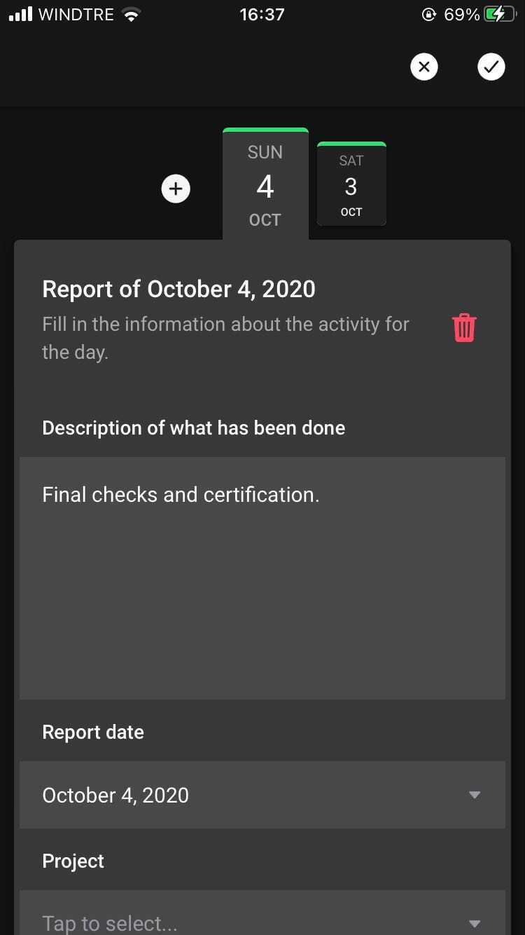 As Monica revealed to us, the technicians often need to carry out very long trips abroad, up to 20 or 30 days. Once, it was necessary to wait for paper reports when the technicians returned; today, thanks to Scarlett, the reports are instantly available. This significant improvement also relieves the administration of a substantial amount of work, saving the usual rush to meet monthly deadlines. In qualitative terms, the job's tasklist has clearly improved.