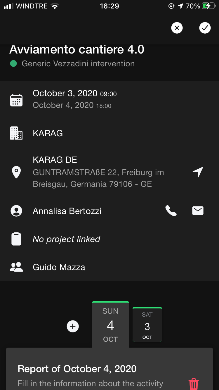 The constant research for optimization of the company's equipment has led Vezzadini to meet Scarlett; the technicians' squad uses the service to report their activities, regardless if they are working in Italy or abroad; apart from instant benefits on the team of professionals, Scarlett also improved many of the linked business dynamics.